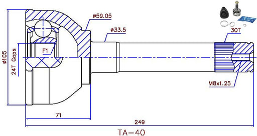 CV JOINT TOY HZJ78/79 (W/OUT FWH) 43405-60100 30/59/24