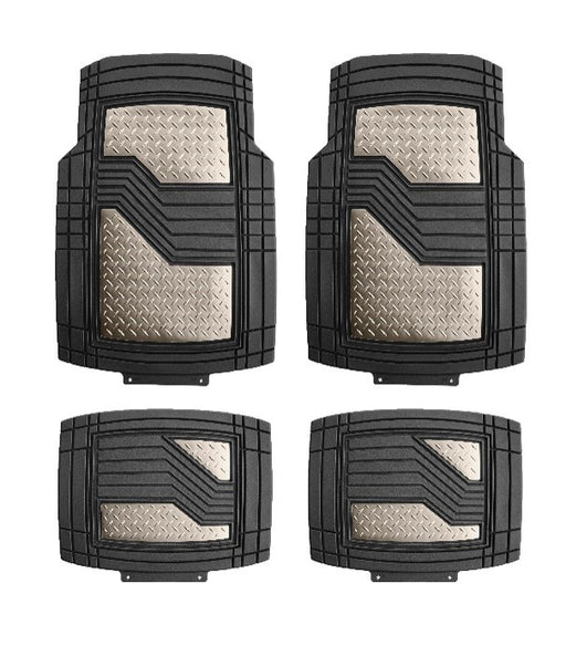 CAR MAT Set H/DUTY PVC RUBBER BLACK W/GM ALU FOIL CHEQ PLT (4pcs Set) (Cut to size)